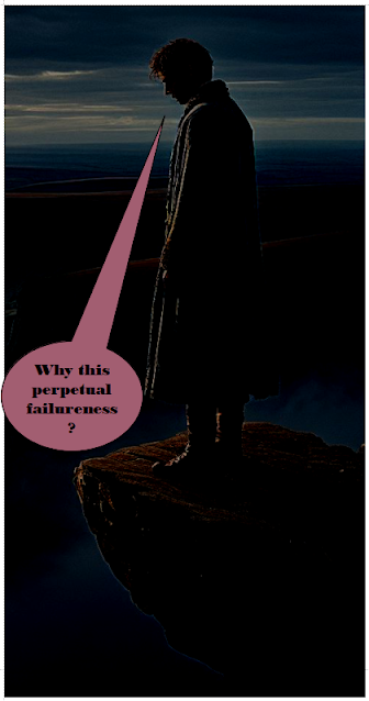 He imagined Edmund standing on the precipice of a crumbling cliff, staring into the abyss, the word echoing through his mind, faintly at first and then louder until he burst out loud with it."Failureness. Failureness. Why this perpetual failureness? Why does it press upon me at every turn?"